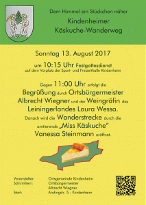 Wir sind wieder dabei! Ihr findet uns wieder am Start / Ziel an der Sport- und Freizeithalle in Kindenheim. Es wird wieder Leckeres aus der Küche geben. Und neben Wein und sonstigen Getränken natürlich frischen Käskuche!